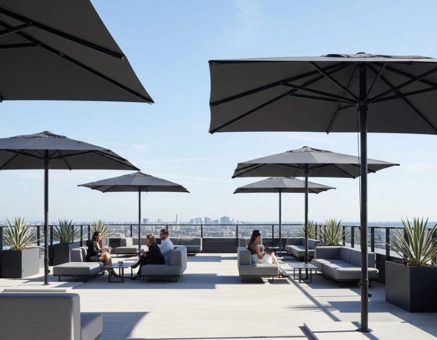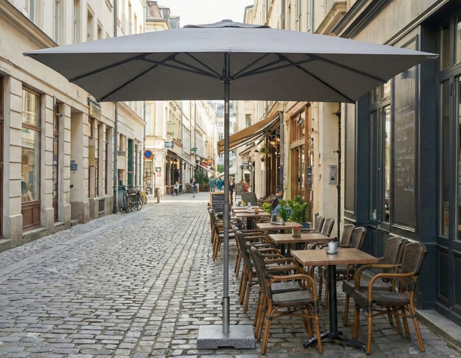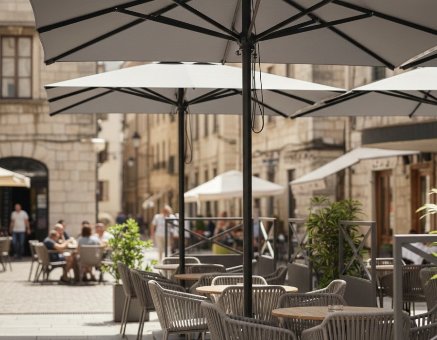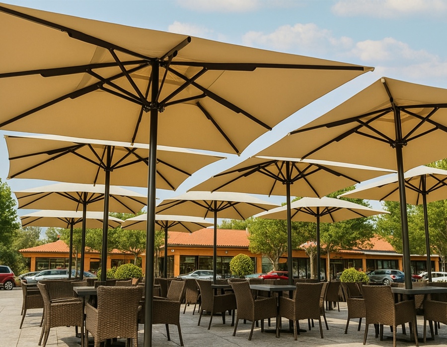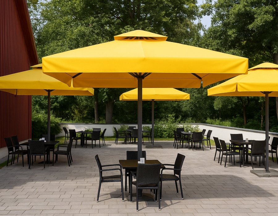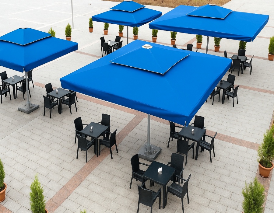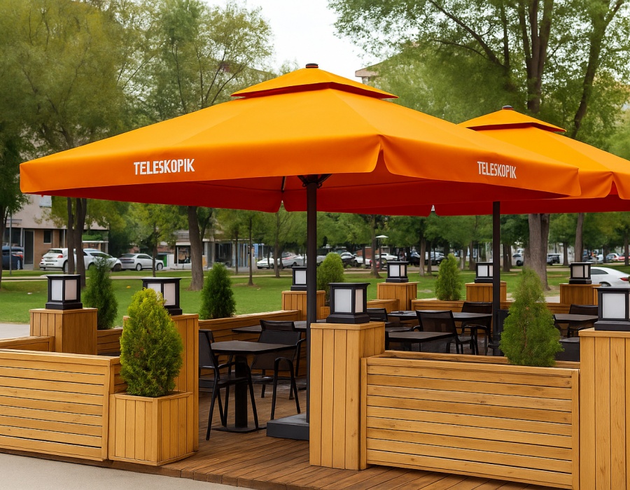 Kafe Restoran Otel Bahçe Düğün Salonu Gibi Mekanları Süsleyen Her Türlü Hava Şartlarına Dayanıklı Şık ve Modern Teleskopik Şemsiyeler.